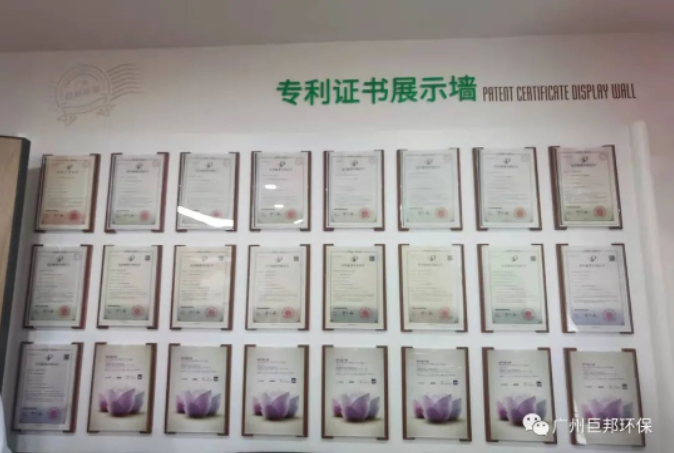 資質及專利展示墻處處彰顯巨邦環保科技的強大實力!