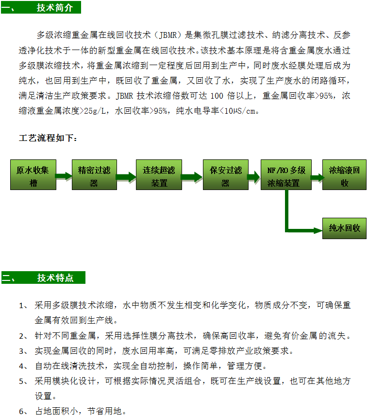 多級濃縮重金屬在線回收技術(JBMR)